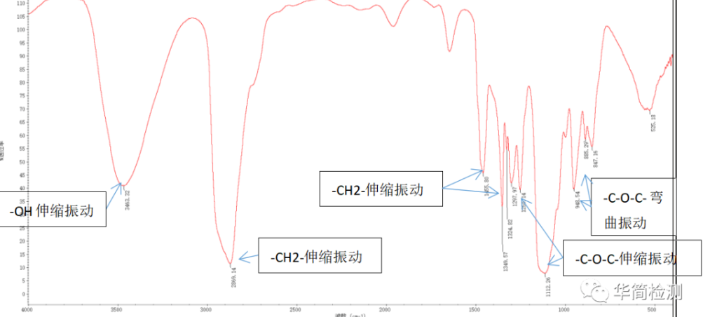 从聚乙二醇的结构上可以看出,其中除了亚甲之外,就只有上面刚说过的-OH以及C-O键,在这个结构中的C-O键更准确的说应该是-C-O-C-这个结构才对,这个结构在高分子材料中尤其多见,那么这个结构所产生的红外光谱有有哪些特征呢?